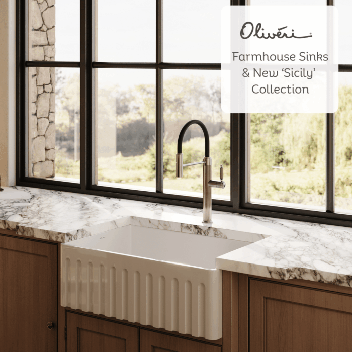 Explore Oliveri Farmhouse Sinks & Their New ‘Sicily’ Fireclay Farmhouse Sink Collection Online & In-Store! ▫️Available In White & Black finishes ▫️Reve