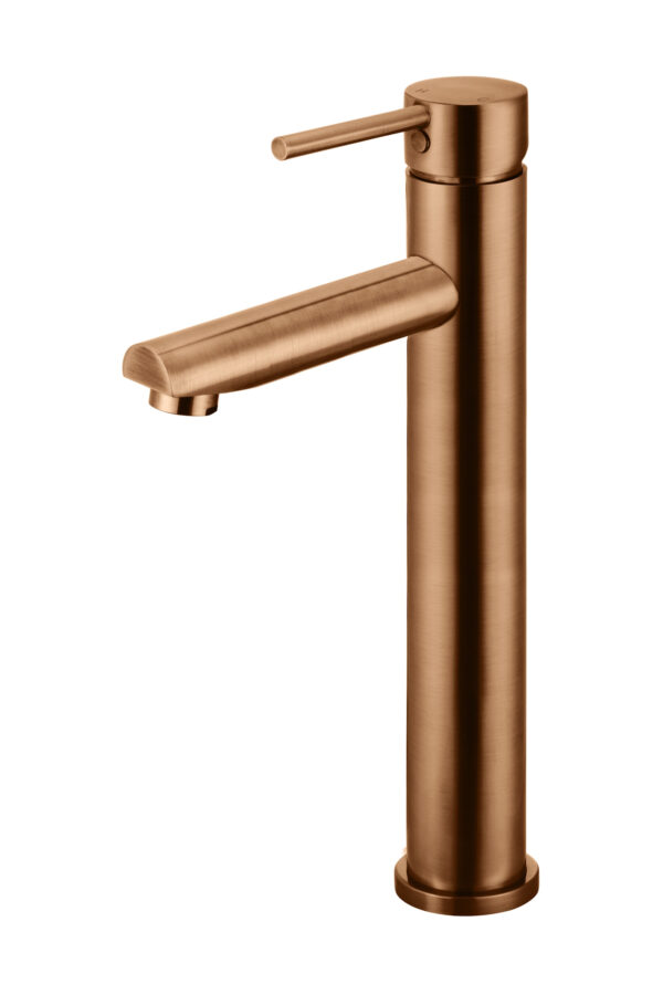 Meir Round Tall Basin Mixer is not only effortlessly stylish but also very practical, giving plenty of clearance for access to above-counter sinks and basins. Available in seven luxurious finishes and life guarantee on all Meir products.
