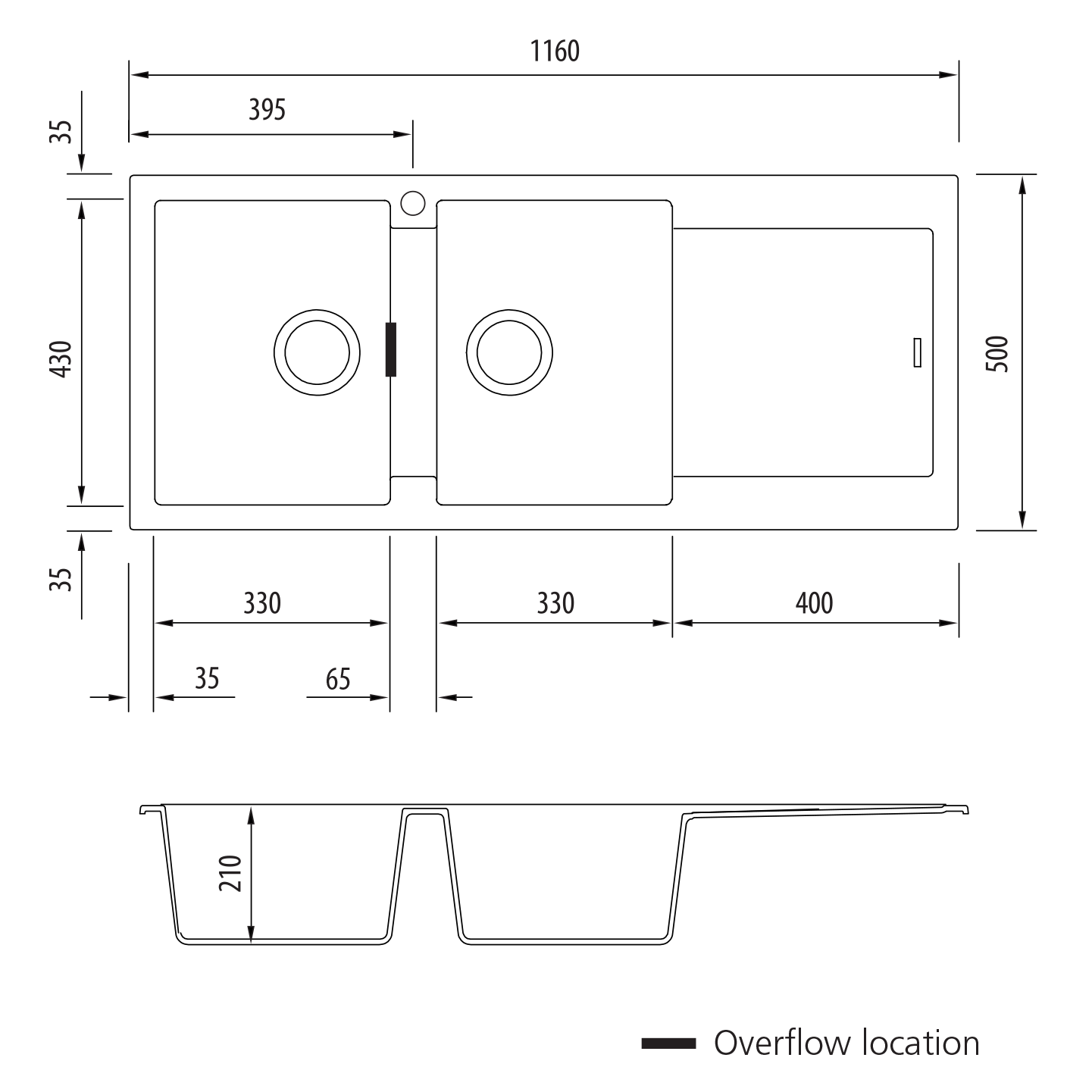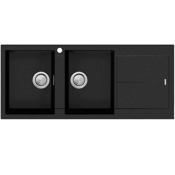 Oliveri ‘Santorini’ Double Bowl Topmount Sink With Drainer is scratch, impact and heat resistant. Made of moulded granite makes it highly practical and durable, whereas it’s beautiful look will uplift any kitchen and enhance practicality.