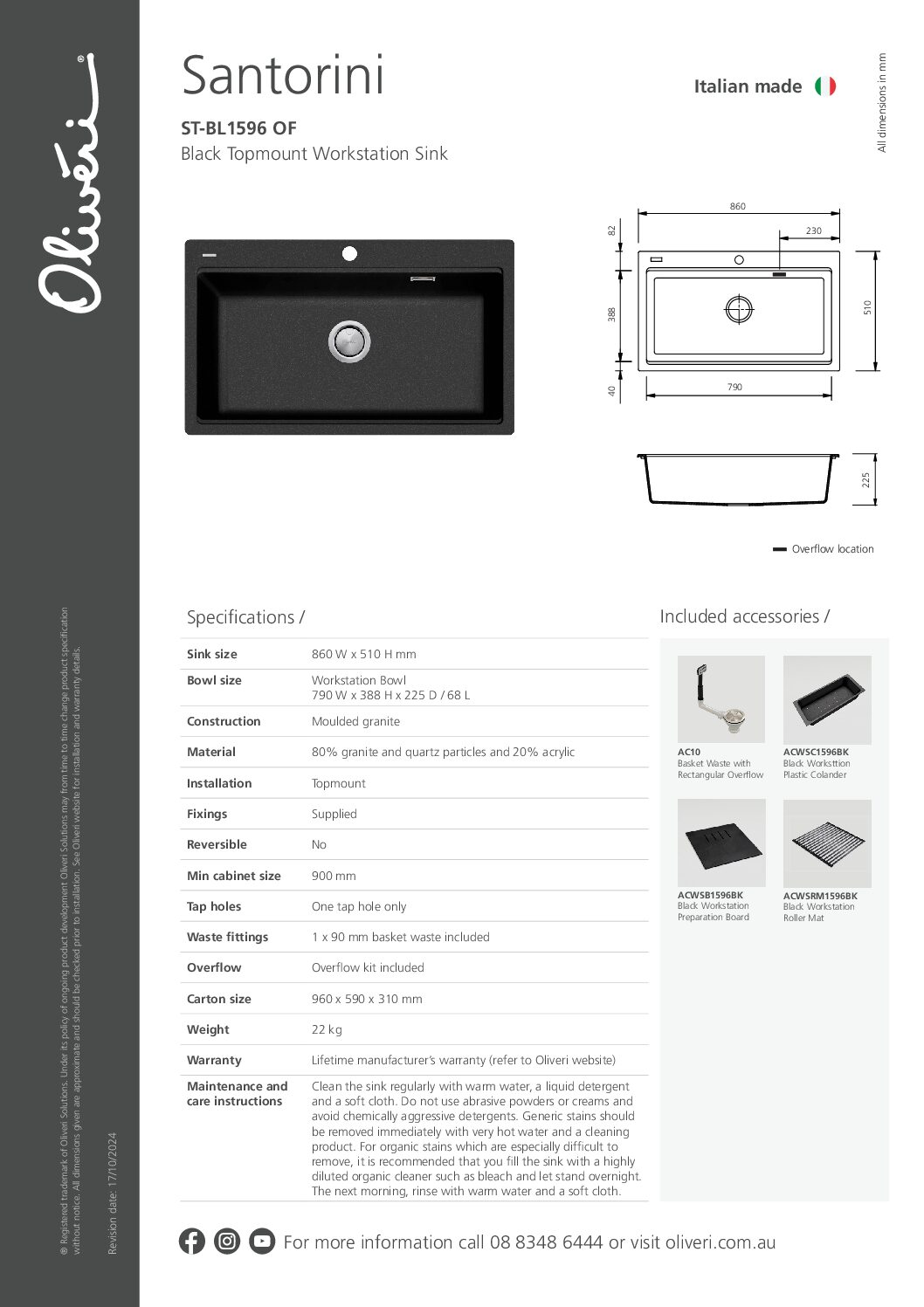 Oliveri Santorini Black Topmount Workstation Sink (With or Without Overflow)